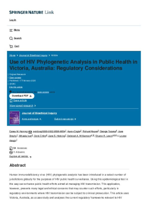 Use of HIV Phylogenetic Analysis in Public Health in Victoria, Australia: Regulatory Considerations