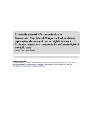 Criminalisation of HIV transmission in the Democratic Republic of Congo: lack of evidence, repressive abuses and human rights issues – Critical analysis and prospects for reform in light of the S.M. case